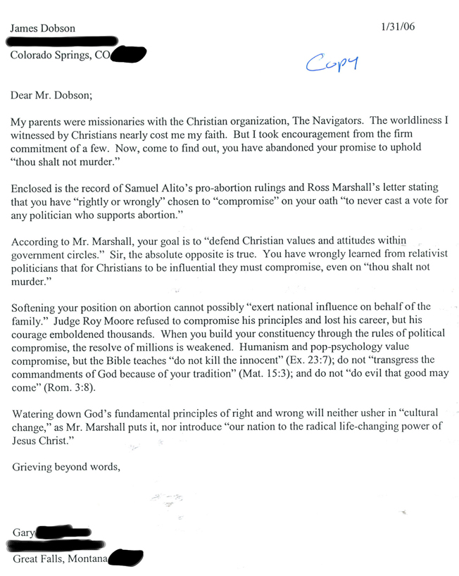 Dear Dr. James Dobson, |